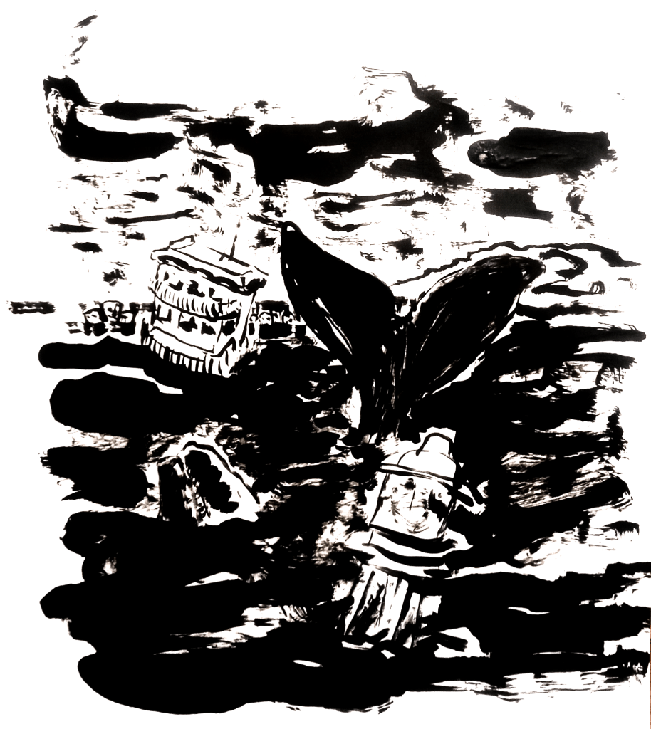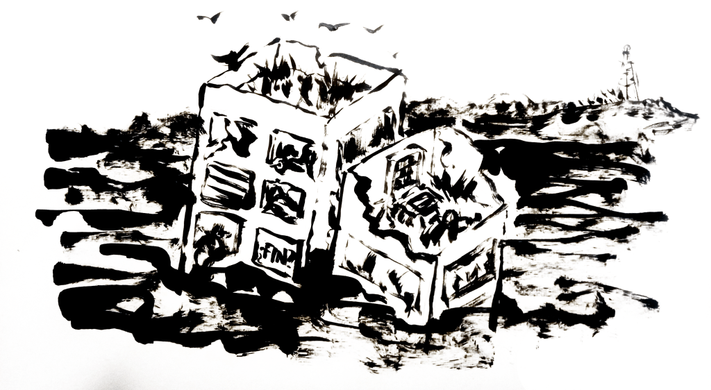 entre las islas de plástico y los huesos de hormigón y óxido.
